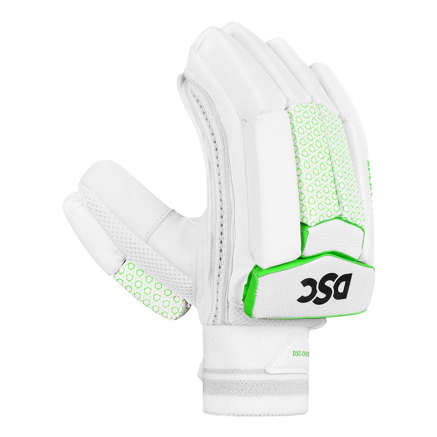 DSC batting gloves are designed with fibre reinforced protection to offer the highest protection during contact while remaining extremely lightweight and comfortable.