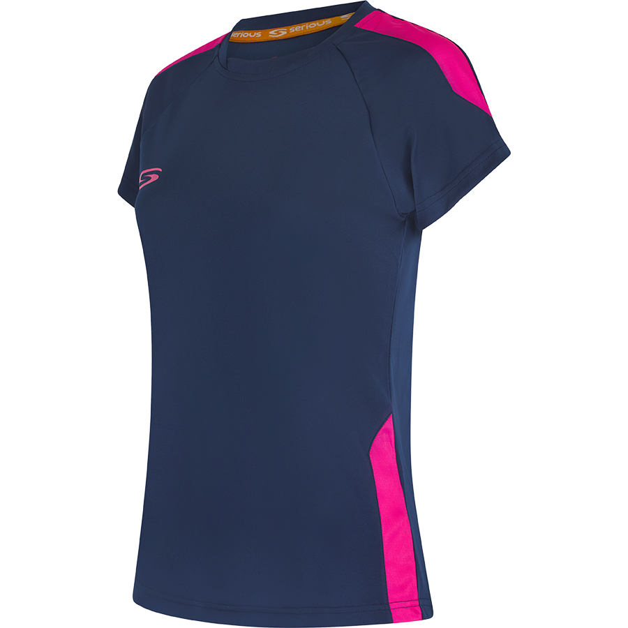 The Serious Core Personalised Training Shirt offers moisture release technology and a Women's fit for training and competition. This crew neck training shirt is constructed with DryCore technology which draws sweat away from the body to keep you cool, dry, and comfortable under the toughest of conditions. Its contemporary design with striking contrast panels to shoulder and body, features the Serious logo situated on the right breast and back neck.