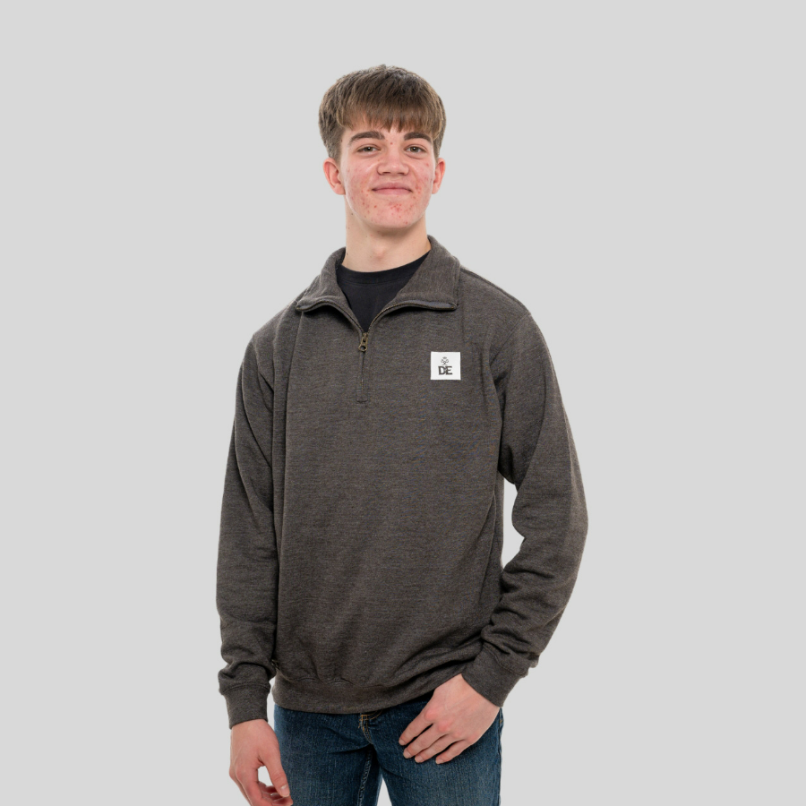 This versatile soft cotton quarter zip sweatshirt has ribbed cuffs and hems, offering a comfortable fit.